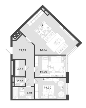 Площадь от 83.79 м2