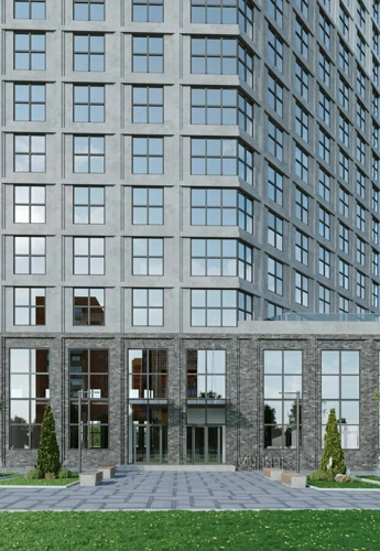 Современный вентфасад, большие окна, продуманные лобби, 4 лифта — эстетика и удобство каждый день.